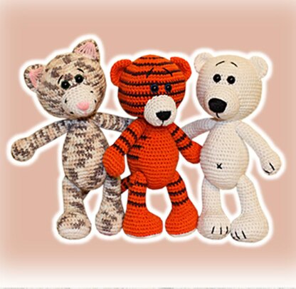 Tiger, Cat and White Bear Crochet Pattern, Crochet Animal Pattern, Teddy Crochet Pattern
