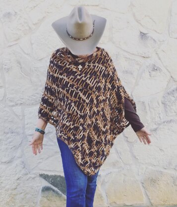 Tiger’s Eye is a natural gemstone with undulating bands of red jasper and black hematite. The Tiger’s Eye Poncho is an easy crochet poncho with an open mesh-like stitch pattern that also undulates back and forth resembling the pattern of the tiger’s eye gemstone.