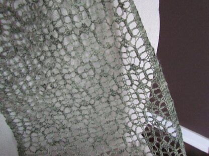 The openness of Tilde is complimented by a wavy bell shaped curve that runs across the pattern. It has been sampled in a mohair airy lace weight to a light fingering weight. The pattern is offered in two versions: with a border and borderless.