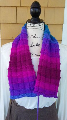 This pretty scarf is easy to make, the stripes yarn does all the color work for you. Uses one skein of Red Heart Super Saver Stripes, I used Polo Stripes for my scarf. This scarf measures 9 inches wide by 32 inches long. If you wish to make a longer scarf you will need more yarn. To make a wider scarf, you will need to add extra stitches. This stitch pattern uses increments of 5.