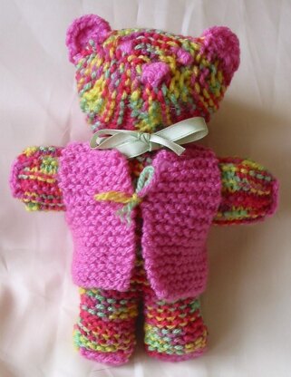 To vary the size of the finished bear,use thicker yarn and needles or thinner yarn and needles. Listed yarn makes bear approx 6 inches tall. Tension is unimportant.