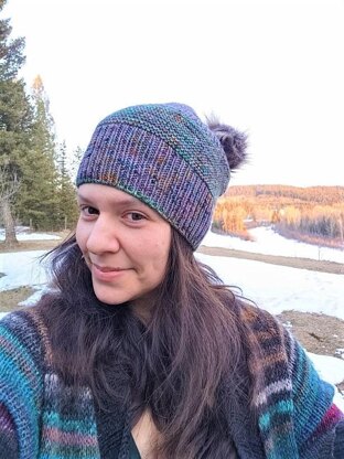 Knit using DK weight, Timberline is an excellent transition hat from winter to spring and fall to winter. Intended to be worn with a slouch, Timberline is cute with or without a pompom.