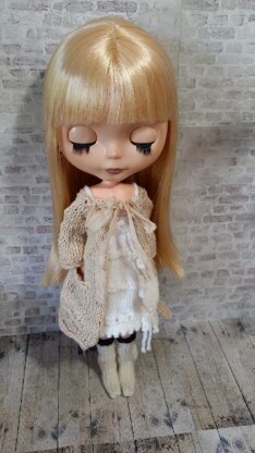 Here is a pattern to knit my Time for Tea housecoat for your 12" Blythe doll. You will need some cotton slub yarn, approx 2/3 ply, baby/fingering weight - a small amount of torn cotton strip, 2.75mm knitting needles and a tea bag to stain it with.