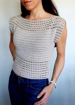 Crochet this classy top for a summer night out! It is slightly fitted to your body & there are 2 different sleeve lengths you can choose from: 2" cap sleeves or 4" length. It is made in 2 pieces (front & back) and then the shoulder & side seams need to be sewed. The top goes by your chest size & it fits chest sizes 30 inches to 45 inches. The length is up to you & it can easily be made shorter or longer. The pattern uses basic American crochet terminology and if you have experience with reading a written pattern this is a great pattern for a beginner.
