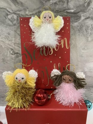 This KNITTING PATTERN is for Tinsel Angel Christmas Decorations in a selection of colours. They are ideal for adding a bit of sparkle at Christmas. They measure approx 7-8cm high. They make great stash busters! You will need 3.5mm needles, King Cole Tinsel Yarn, Big Value DK yarns, Glitz and Cosmos Orbit/Lincatex Gold Rush yarns. Also a little toy stuffing for the Head. This pattern was written by me and has 3 pages.
