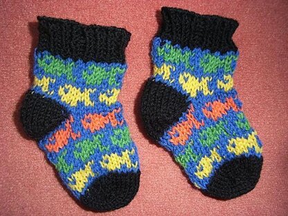 It's my favorite stranded fish pattern on baby socks. I gifted the socks to a good friend expecting her baby. She got her baby girl on October 8 2013 and got the surprise parcel right when she got home from the hospital. She told me that the socks fit perfectly.