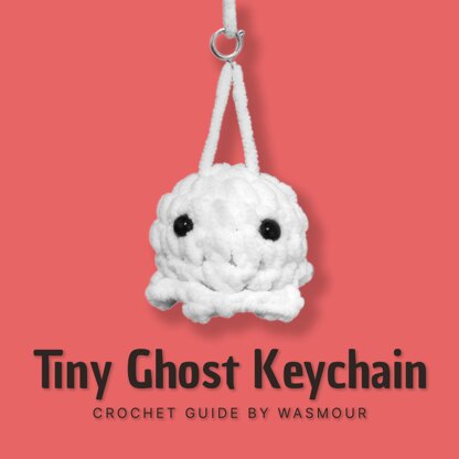 Crochet pattern for a tiny ghost keychain.