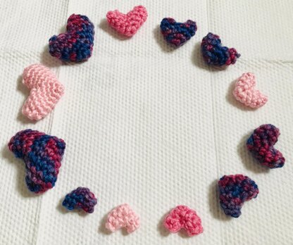 This is a total stash buster! You need barely any yarn for these tiny hearts, and they work up super quick! Included with this pattern is a whole page of ideas on how or where to use them!
