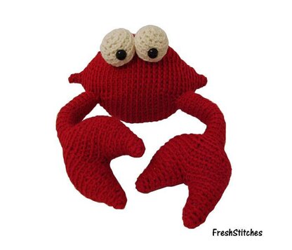 Meet Tip the crab... he's soft and loveable, and not the slightest bit pinchy! Tip's shell measures 7 inches tall when completed... with a 17 inch wide clawspan!