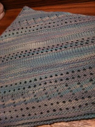 Tisket is a simple, texturally striped, small triangular shawl. It can be knit in various yarn weights to yield shawls of different sizes and works equally well with solid, gradient, multicolor, or self striping yarns with long color repeats, such as Kauni or Noro. I like to knit in the evenings while watching tv, and Tisket required the perfect amount of brain power to keep me going without being a distraction. Since it is constructed without a plain knit or a complex lace body it is both actively engaging to knit without requiring too much concentration.