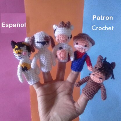 El patrón incluye Old Macdonald, perro, caballo, gato, vaca y cerdo. Juega y diviértete con estos títeres de dedo del viejo Macdonald.