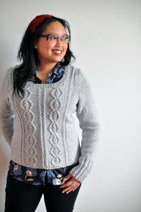 Tiverton is a classic, easy to wear pullover featuring mirrored cables on front and back, long twisted rib cuffs and a deep scoop neck. Perfect for layering, and versatile enough to throw on with jeans or a flirty skirt. Tiverton is knit in four pieces and seamed together, with a casual straight fit and set in sleeves. The ribbed collar is picked up and knit in the round. The squishy organic merino from O-Wool provides amazing stitch definition and a smooth yet wooly feel.