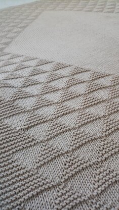 Toby's Blanket follows a decreasing and increasing triangles pattern to form a diamond in the middle of the blanket. The pattern becomes instinctive as the triangles decrease towards the edge, before being added back on the second half of the blanket. Extra stitch markers may be useful in marking triangle position. The pattern has been tested and it is both written in full and charted.