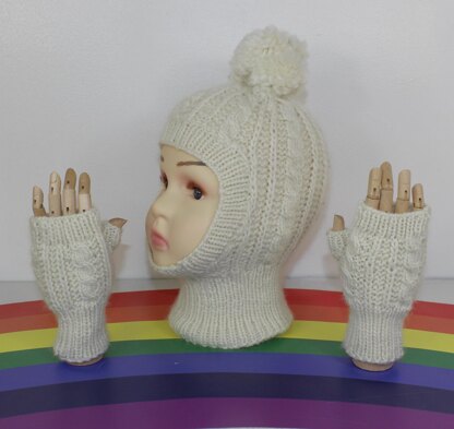 Toddler Child Aran Cable Bobble Balaclava & Gloves