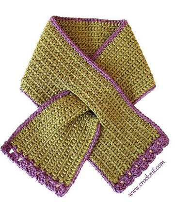 A very simple and quick keyhole scarf with a simple decorative fan edge. A crochet scarf which stays in place without you having to tie a knot in it.