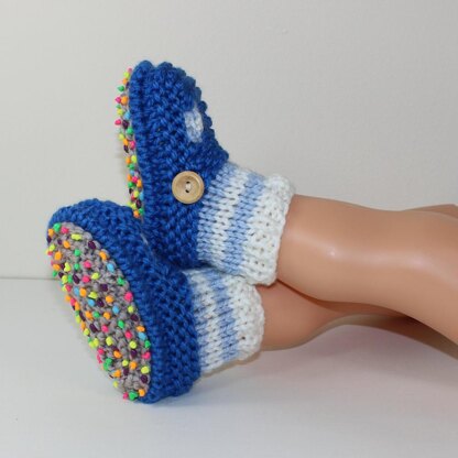 This is my Toddler Chunky Stripe Sock and T Bar Sandal Slippers knitting pattern. I have never designed toddler footwear before because I was terrified of baby slipping whilst taking those early steps. Now that I have found Sock Stop for the soles I can confidently say that these boots will not slip. The pattern provides full instructions to make these boots in 4 toddler sizes and there are lots of step by step photos to help you throughout including the application of Sock Stop at the end of the makeup. These are really fun boots to make so make your young toddler a pair today! This knitting pattern is available to buy here as an immediate pdf download.