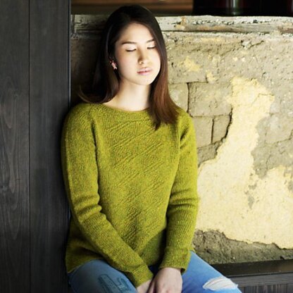 Tolmie is a cozy, top-down, in the round sweater with garter stitch edgings and a beautiful diamond motif on the front made entirely of knits and purls.