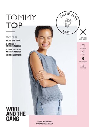 Tommy Top in Wool and the Gang Billie Jean Yarn - V341245246 - Downloadable PDF is a Intermediate Knitting pattern by Wool and the Gang, available as a Downloadable PDF and includes instructions in English. Super fun to make, this pattern could be your next masterpiece!
