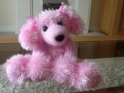 Here is Toodles . She is a sweet little poodle that will make any child and adult happy to recieve. Colour choice is up to you , let your imagination run wild . You will need appox. 50g dk yarn and 75g of stylecraft eskimo . You can use worsted weight yarn if you cant get dk . the poodle may be slightly bigger.