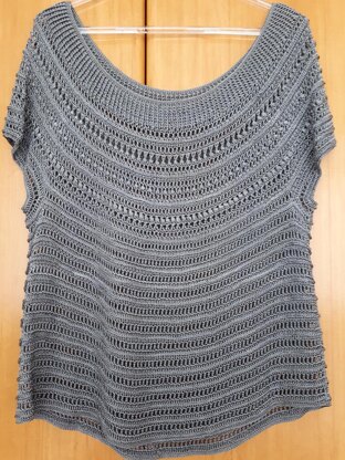 This crochet top has a circular yoke and is crocheted from the top down. Materials: 100% acrylic 395 meters in 100 grams (Cisne Hobby). Pattern in pdf format, with a photo, with a description of the crochet process and charts. Size: 48-50. Difficulty Intermediate. Product weight 460 grams.