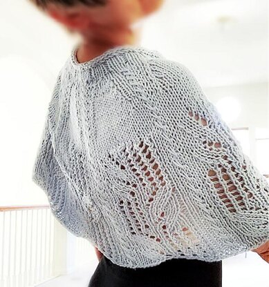 It’s knitted in the round, from the bottom up with a stunning lace pattern and an easy cable stitch. The decreases up to the neckline are just beautiful and the I-cord bind off tops it all off.
