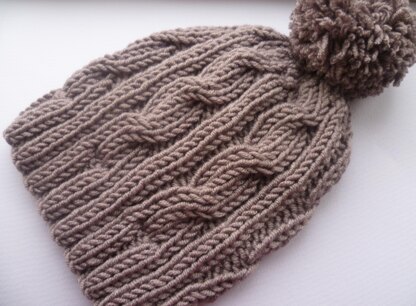 A classic twisting ribbed cable hat designed for chunky-weight wool. The rib within the cable gives extra definition to the design with the columns of knit stitches framing the twists of the cable. The pattern is aimed at the knitter who prefers to knit on single-pointed needles (knit flat) but there are also instructions about how to knit the hat in the round, including a cable chart. There is a photo-illustrated guide to mattress stitch included with the pattern to show how to create neat seams if knitting flat.