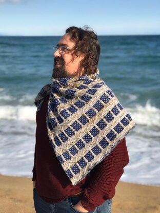 The Torroja shawl is a triangle-shaped shawl. It features a pattern using cables and slipped stitches, and is surrounded by an icord.