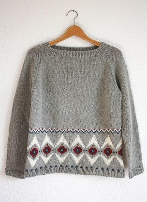 Totem is a pullover with simple lines, built top down, starting at the neckline. It’s knitted in one piece, seamless with raglan sleeves.