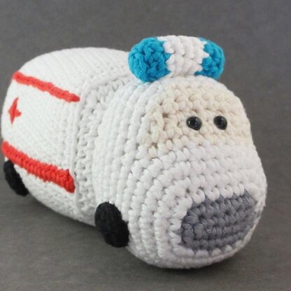 Finished ambulance car is about 6.7" (17 cm) long but it depends on the yarn and hook you use.