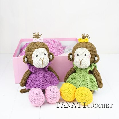 Monkey – size 26 cm (10 in), if using sport weight yarn (Sport (12 wpi), 2: Fine). The pattern includes 2 dresses for the monkey.