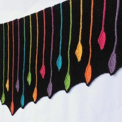 This scarf / shawl is knit from end to end and is completely customisable with regards to length. Each teardrop uses just a few yards of yarn so this would be a perfect project for using up some leftover scraps.