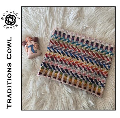 Traditions Cowl was designed to accompany Folklore Yarns 2023 Advent kit of a main colour and 24 colours of their “Traditions” Donegal Aran Tweed.