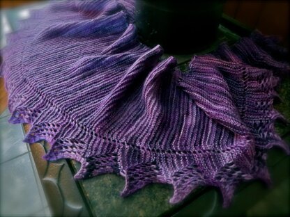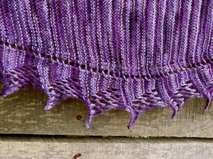 Traliccio is a fun and easy to knit shawlette. The garter stitch body is accented by a garter stitch based lace pattern on the border. It is knit from side to side, and is adaptable to any yarn weight or size. Just weigh your yarn, increase until about half the yarn is gone, then begin to decrease. Traliccio is perfect for the advanced beginner, but still an enjoyable knit for the more experienced knitter.