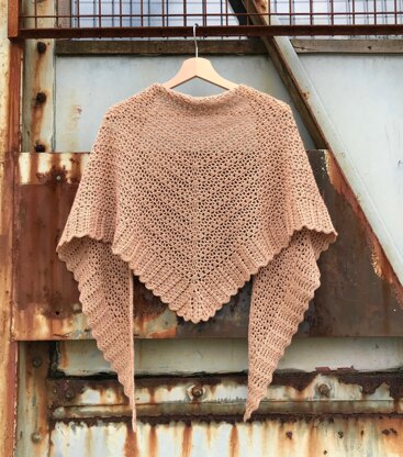 The shawl is worked topdown, and has a delicate lacy body section. The border has structured stitch patterns creating a more sturdy look.