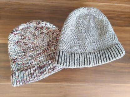 Trawler HatThis hat is a combination of an intuitive and dense geometric pattern of twisted stitches for texture and interest and the warmth of a squishy fisherman’s rib brim, making for toasty warmth in the cold weather. The result is an engaging knit and a hat of cosy goodness, which is both lovely to look at and great to wear. After working a snuggly Fisherman’s Rib brim, knit up in either 1 or 2 colours, you’ll work continuously to the crown decreases in the diamond patterned chart made up of alternating Right and Left leaning twists. Due to the nature of these stitches, it is a fairly tight-fitting but is open to various size adjustments. You can add more ‘slouch’ amount by working extra repeats of the chart pattern before proceeding to crown decreases, and in circumference by adjusting the cast on amount, as explained within the Finished measurements section. The matching Shawl is also available, with a cowl also soon to be released.