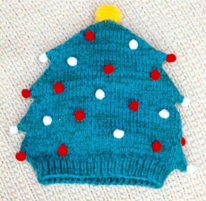 What a fun party hat to wear at the office! This is easy to knit too. Knit up hat in two sides, then sew together. (this part is easy too) Then add pompons for ornaments, or beads and buttons! It really looks cute for ladies with tiny bows sewn all over it too! This is not only a hat, it can be used as a cover over jars and small coffee cans! A real novelty item! Uses worsted weight yarns, or use sport weight yarns, 2 strands held together. Knitting needles, US # 7. Finished tree is about 10 inches tall.