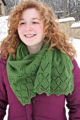 PATTERN NOTES This pattern contains four main sections. It is constructed in a traditional Estonian method, and the second edging is knitted from the cast on up and joined to the body of the scarf with Kitchener stitch. The lace motifs include pine trees, pine cones, and a lovely and delicate leaf/acorn pattern. Along the main body, a gentle wave and cable pattern twist towards the center.