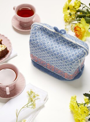 This a pattern for a stranded colourwork tea cosy worked from the bottom up and in the round.