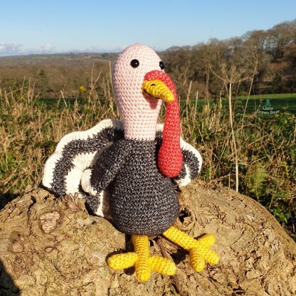 Trenton the turkey is a little gobbler who spends his days strutting around the farm, showing off the length of his snood, whilst looking for tasty bits of food. He loves running and is very fast, he hasn’t been caught by the farmer yet! He sits 11 inches tall (when made with recommended materials).