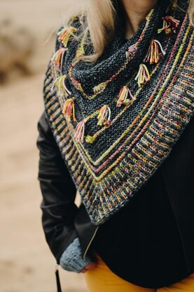 The “Frenglish” name says it all! This cowl is a like a playground of speedy garter stitch with a variety of colorful stripes and embellishments to entertain the knitter and the eye. The beautiful TréLiz yarn and the striking but simple brioche border add a bit of French flair. No doubt you’ll be very amusée!