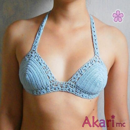 Triangle bikini top with see trough lacy flowers at the edges PDF Crochet Pattern.