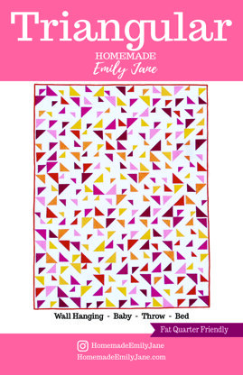The Triangular Quilt pattern is Fat Quarter Friendly and features 5 different sizes of Half Square Triangles, all constructed using the 4-at-a-time method. This is an intermediate level quilt pattern due to using a large number of small pieces. It is particularly great for someone who has already made a few quilts before. The pattern is filled with easy to follow diagrams for every step of the pattern, and includes instructions for Wall Hanging, Baby, Throw, and Bed sizes.