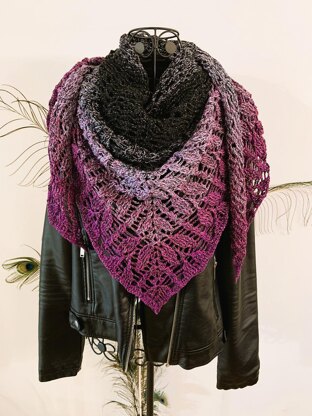 With this pattern you can crochet the beautiful symmetrical triangle shawl "Lytaia". The charming leaf pattern is interspersed with small braids, the shawl is loose / airy and therefore ideal for spring and autumn!