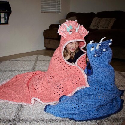 Your favorite triceratops pattern has been created into a cool triceratops hooded blanket! We know everyone loves hooded blankets so we couldn't pass up the opportunity to make an awesome hooded triceratops blanket. This is perfect for dinosaur lovers of all ages. Don't worry it also comes in a girl version so everyone can have one. The pattern includes instructions to make this hooded triceratops blanket in either chunky yarn or worsted weight yarn. It is very detailed and there are pictures throughout to make things easy to understand. Above all, with these detailed instructions, even those with little crochet experience can find success creating their own masterpiece!