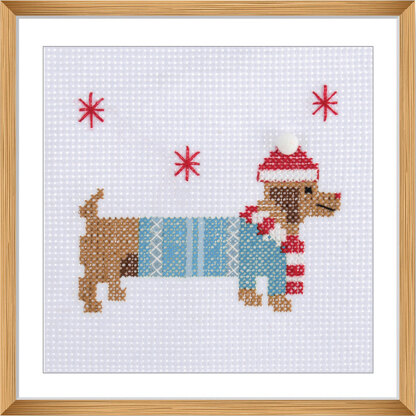 Trimits Mini Counted Cross Stitch Kit: Festive Dachshund Cross Stitch Kit - 13 x 13cm