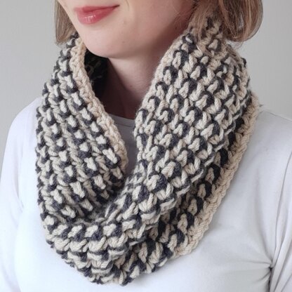 The Trinity Stitch Cowl is a chunky, cozy cowl with a unique striped effect!