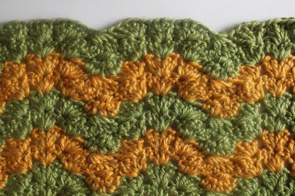 Trios of increases make a stunning ripple blanket with wide, gently curved peaks and deep, pointy valleys. A video tutorial is available to demonstrate all the special stitches and share helpful hints.