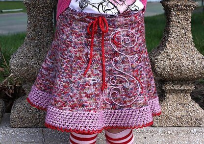 The skirt is knit entirely in the round from top down. It begins with a provisional cast on, which is used to allow for a knitted on waistband.