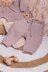 Trousers are seamless, worked top-down in the round. On hips they are decorated with fantasy pattern and can be fixed on baby body with knitted ties (i-cord). To make them more anatomic and comfortable for baby, back part is longer than front one and is realized in short row technique.