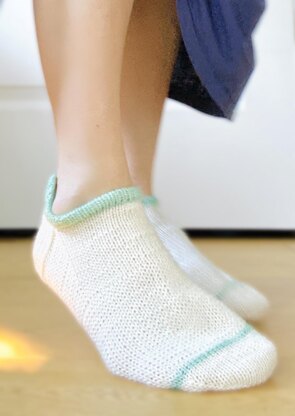Worked cuff down, these shortie socks have a foldover cuff with a short row ankle tab that prevents them from slipping down in your sneakers. Your socks keep a low profile but you can still show off a fun little pop of color.